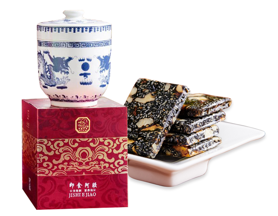 即食阿膠是根據唐代宮廷秘方“貴妃美容膏”組方所得,1920 年由東阿潤惠堂第六代掌柜任國興研制發(fā)明,形成現(xiàn)代固體形態(tài)、 方便攜帶和食用的“即食阿膠”(阿膠糕)。任國興隨之首創(chuàng)凝膠 成糕法,將黑芝麻、核桃仁、桂圓肉、紹酒、冰糖等… …